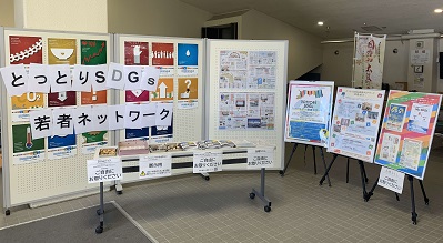 とっとりSDGs若者ネットワークと一般財団法人鳥取市教育福祉振興会(とっとりSDGsパートナー)が協力してSDGs展示ブースを設置しました。