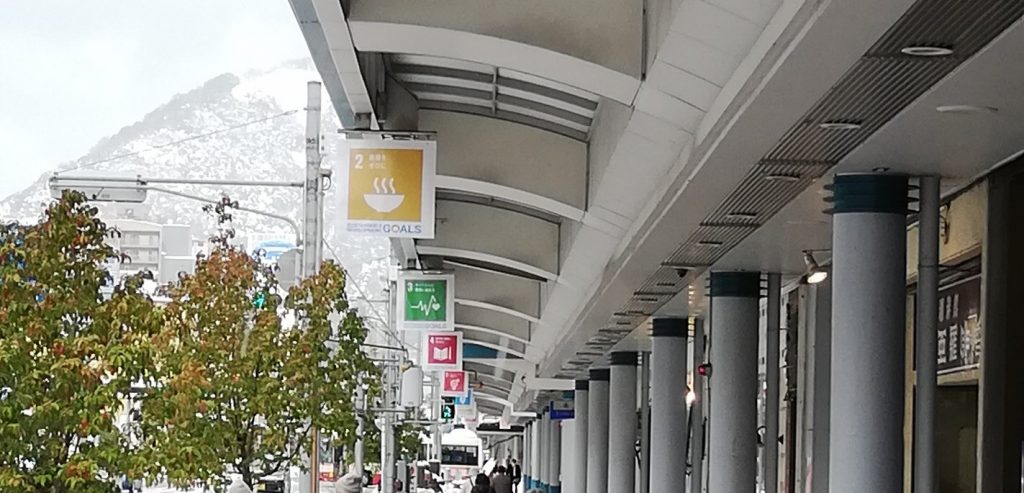 鳥取市内の小学生が商店街に「SDGsフラッグ」を掲出!