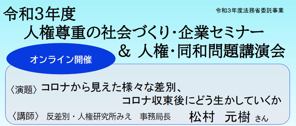 【1/21申込締切】人権・同和問題に関するセミナーを開催します!