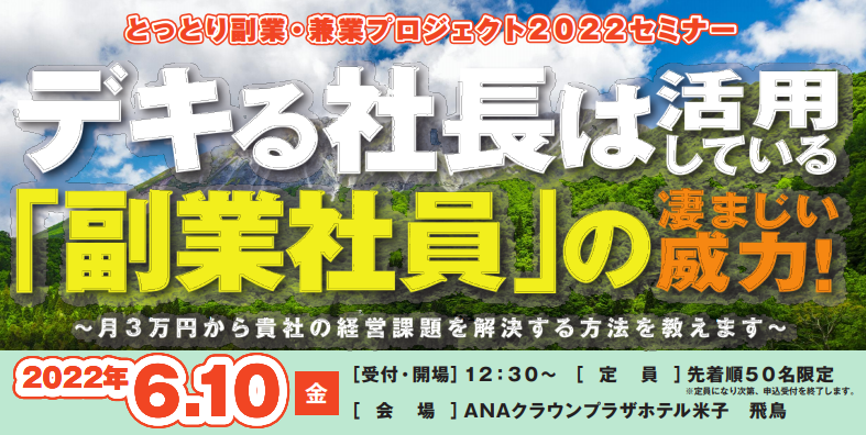 【要事前申込】とっとり副業・兼業プロジェクト2022セミナーの開催