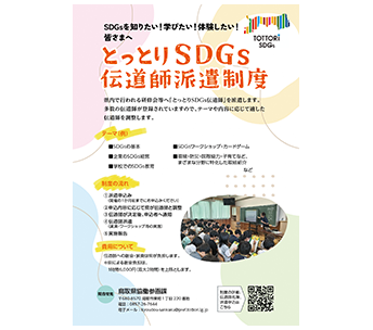 SDGsを学びたい、SDGsについての講座や研修を開催したいが講師を誰に頼めばよいか分からない・・・といった声にお応えするため、SDGsを分かりやすく説明し、具体的な事例紹介等を行う「とっとりSDGs伝道師」を講師として派遣します。
