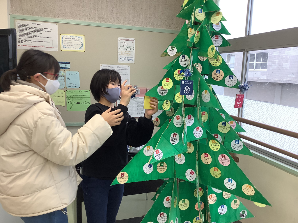 SDGsの普及啓発活動の一環として、鳥取市立久松小学校の全校児童の皆さんが「SDGsクリスマスツリー」を製作しました。「SDGsクリスマスツリー」には、児童のみなさんによる未来へのメッセージや17のゴールが飾り付けられており、12月21日・22日の2日間限定で、鳥取県庁本庁舎1階ロビーに展示しますので、県庁にお立ち寄りの際はぜひご覧ください。