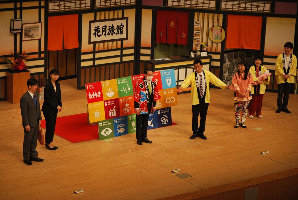 令和4年3月24日(木)に、とりぎん文化会館にて鳥取県東部中小企業青年会中央会が主催する「SDGs×吉本新喜劇in鳥取」が開催されました。平井知事もゲストで出演され、「SDGsで(S)最(D)大(G)限(s)幸せにしよう!」とダジャレを交えながら、会場を盛り上げました。